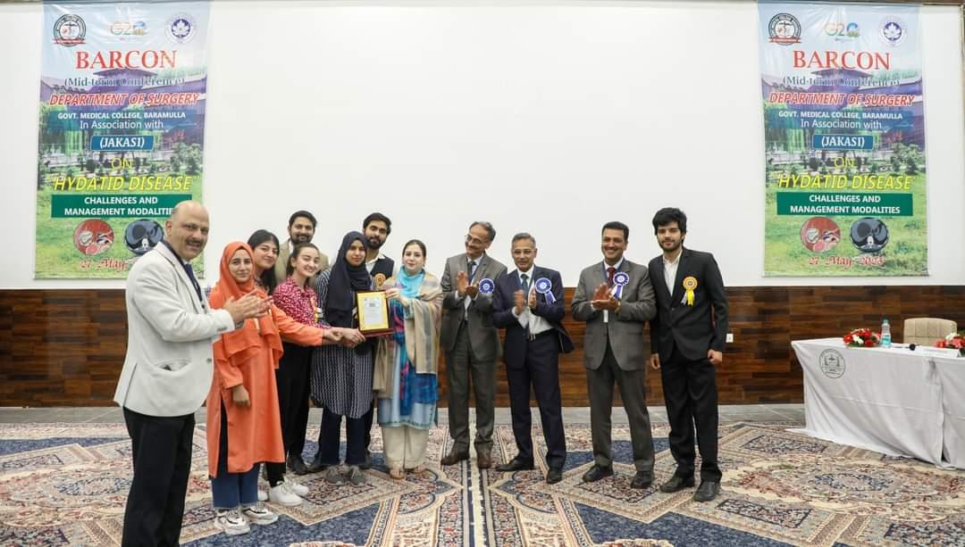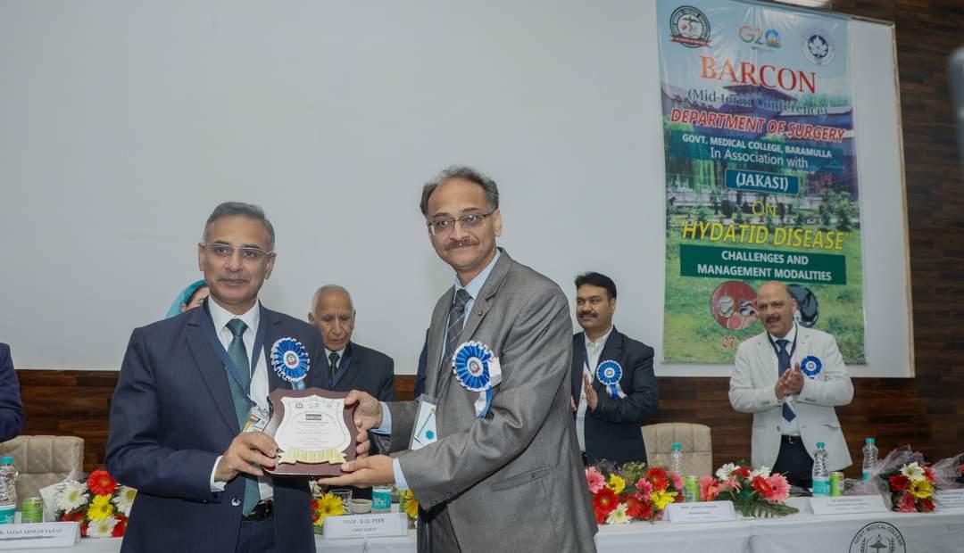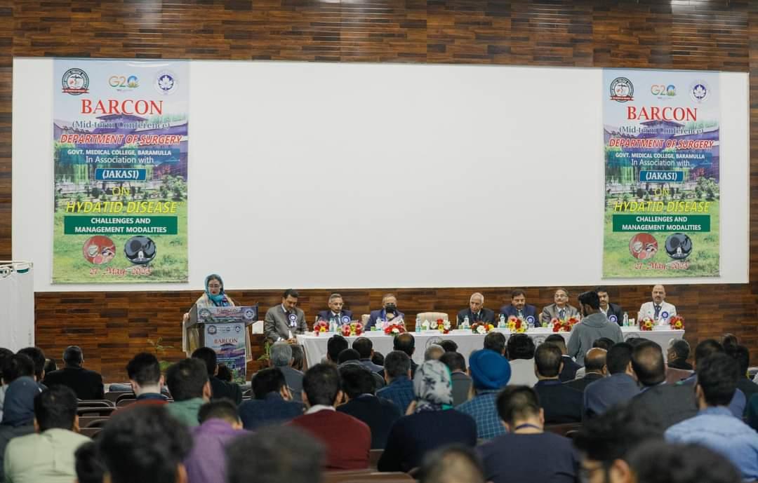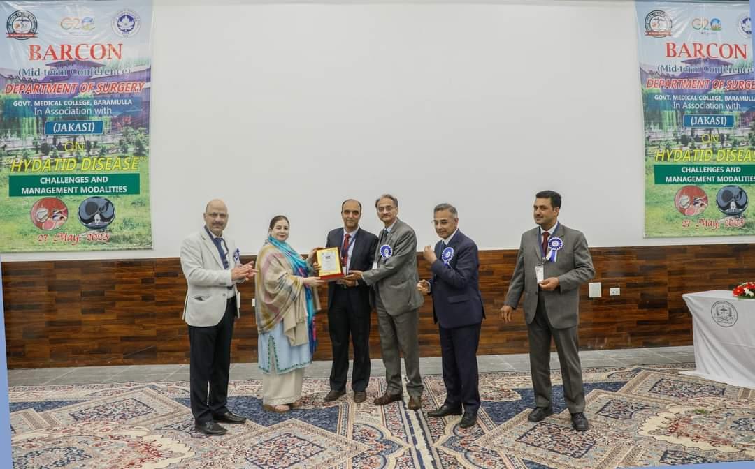 GMC Baramulla Hosts One-Day CME "BARCON 2023" The Department of General Surgery at Government Medical College (GMC) Baramulla organized a one-day mid-term conference, titled "BARCON 2023." in association with the J&K Chapter of the Association of Surgeons of India (JAKASI), the program took place on May 27th at the GMC Baramulla campus and saw participation from 160 delegates including esteemed members of JAKASI, prominent professionals, and eminent surgical masters, to exchange knowledge and insights. The focal point of this program was the theme "Hydatid Disease: Challenges and Management Modalities," which drew the attention of the medical community and experts from across J&K. The program encompassed a series of engaging sessions. Attendees were treated to enlightening paper presentations, thought-provoking guest lectures, an e-poster session, and an exhilarating postgraduate quiz competition. The proceedings were presided over by Dr (Prof) Ruby Reshi, Principal GMC Baramulla, who was accompanied by the organizing chairman, Dr H. Vaqar Ahmad (HOD Surgery, GMC Baramulla) Prof. Sanjay Bhasin, Chairman of JAKASI, Dr Zaffar S Khanday, Secretary of JAKASI, and other esteemed members of JAKASI who lent their expertise and support to the conference. The conference was met with overwhelming acclaim from the delegates, who praised the comprehensive and enlightening nature of the scientific program. Distinguished personalities, including Chief Guest Prof. G.Q. Peer, former Chairman and Head of the Department of Surgery at SKIMS, and Guest of Honour Prof. Mufti Mehmood, Head of the Department of Surgery at GMC Srinagar, commended the event as a valuable learning opportunity for aspiring surgeons. A notable highlight of the conference was the presence of ADDC Mr Aijaz Ahmad Saraf, who expressed their admiration for the knowledge-sharing platform provided by BARCON 2023. Dr (Prof) Ruby Reshi, extended her heartfelt congratulations to the organizing team for their meticulous efforts in ensuring the event's success. She expressed gratitude to the office bearers of JAKASI for bestowing their trust in GMC Baramulla as the host institution for this crucial mid-term conference. Prof. Sanjay Bhasin, Chairman of JAKASI, acknowledged the conference's resounding success and expressed his aspirations for future CMEs to be held at GMC Baramulla. Dr Pervaiz Masoodi, MS Assoc. Hospital GMC Baramulla, shed light on the functioning and accomplishments of the associated hospital in Baramulla. Dr Mehmood Rashid and Dr Afak Yusuf Sherwani, the organizing secretaries, extended their heartfelt thanks to all the delegates from across J&K for their active participation, which contributed to the success of the event.