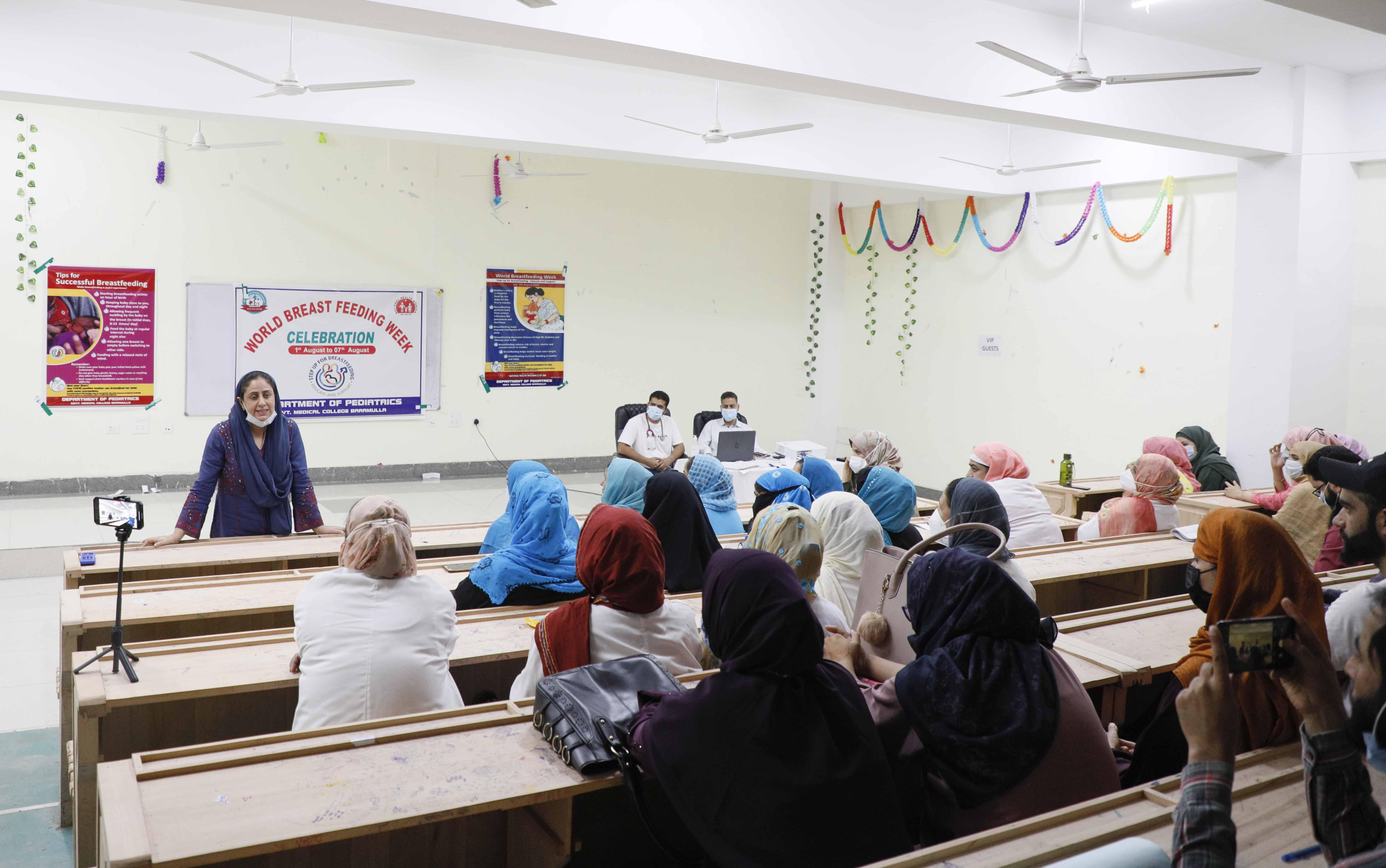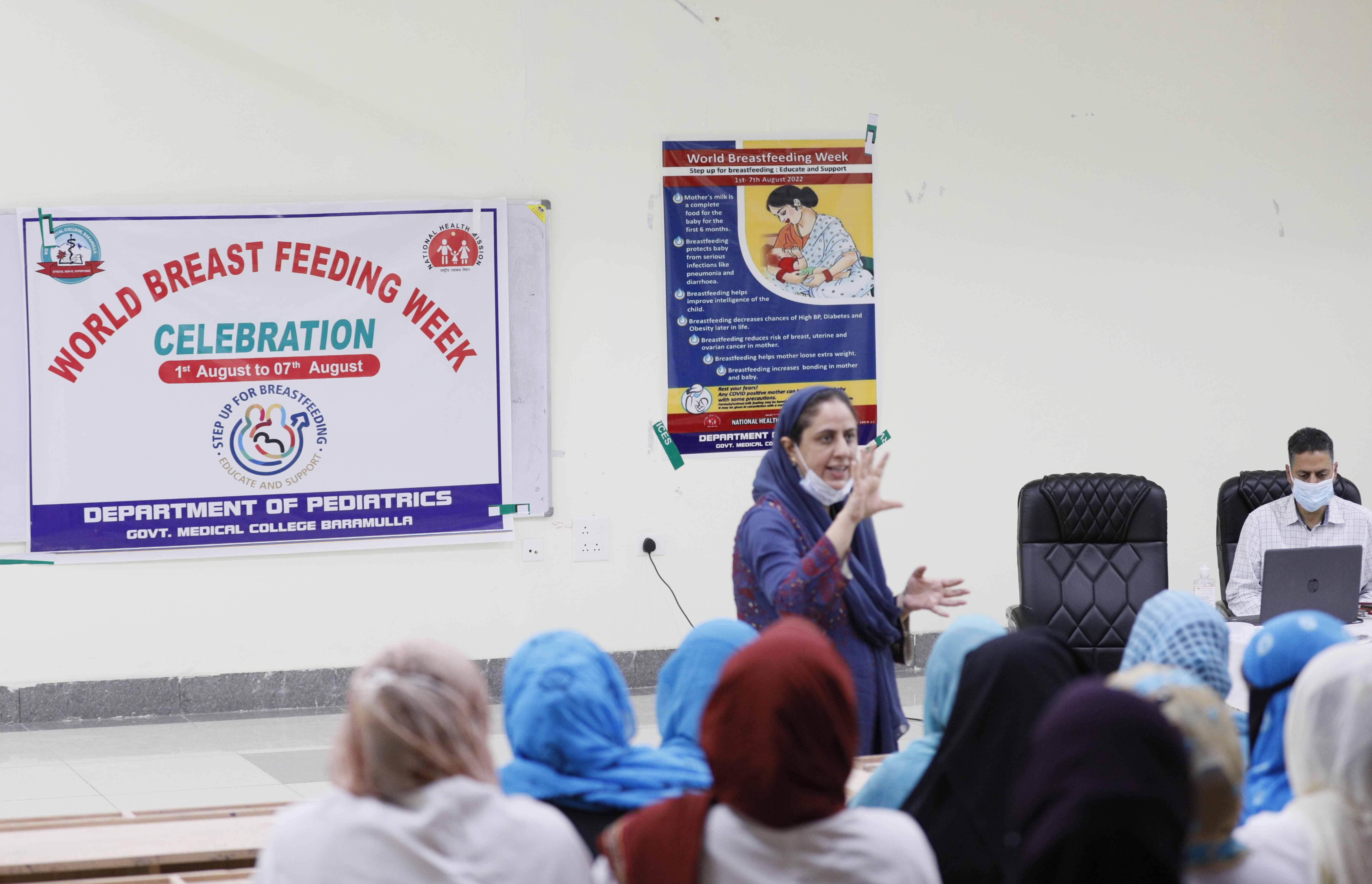 A week long World Breastfeeding Week started from 1st of August with the aim to educate and sensitize different stakeholders regarding the cardinal importance of Mothers Milk for the health of the young infant. The day one marked with a brief presentation by the department of pediatrics wherein Dr Aliya Kachroo delivered a comprehensive lecture sensitizing the staff: Medical Officers, Staff Nurses, ASHAs, on the importance of early and exclusive Breastfeeding for the normal and C Section deliveries. The nursing staff would then eventually provide counselling support and information to the mothers for breastfeeding. On second day, the counsellors went from bed to bed in the post op ward of OBG desiminating and educating the mothers on the importance of Mothers Milk for infant. The key message delivered were: early initiation of breastfeeding immediately after birth preferably within one hour; breastmilk alone is the best food and drink for an infant for the first six months of life. The third day continued with other aspects intertwined with the Breastfeeding of the infants wherein the "MAA"- Mother's Absolute Affection programme of the Ministry of Health and Family Welfare was discussed and deliberated. The programme has been named ‘MAA’ to signify the support a lactating mother requires from family members and at health facilities to breastfeed successfully. The discussion continued focusing on the Goals, objectives and components of the MAA. The other aspects and sub themes of the Breastfeeding shall be continued for rest of the week with aim for capacity building and orientation of the health care workers.