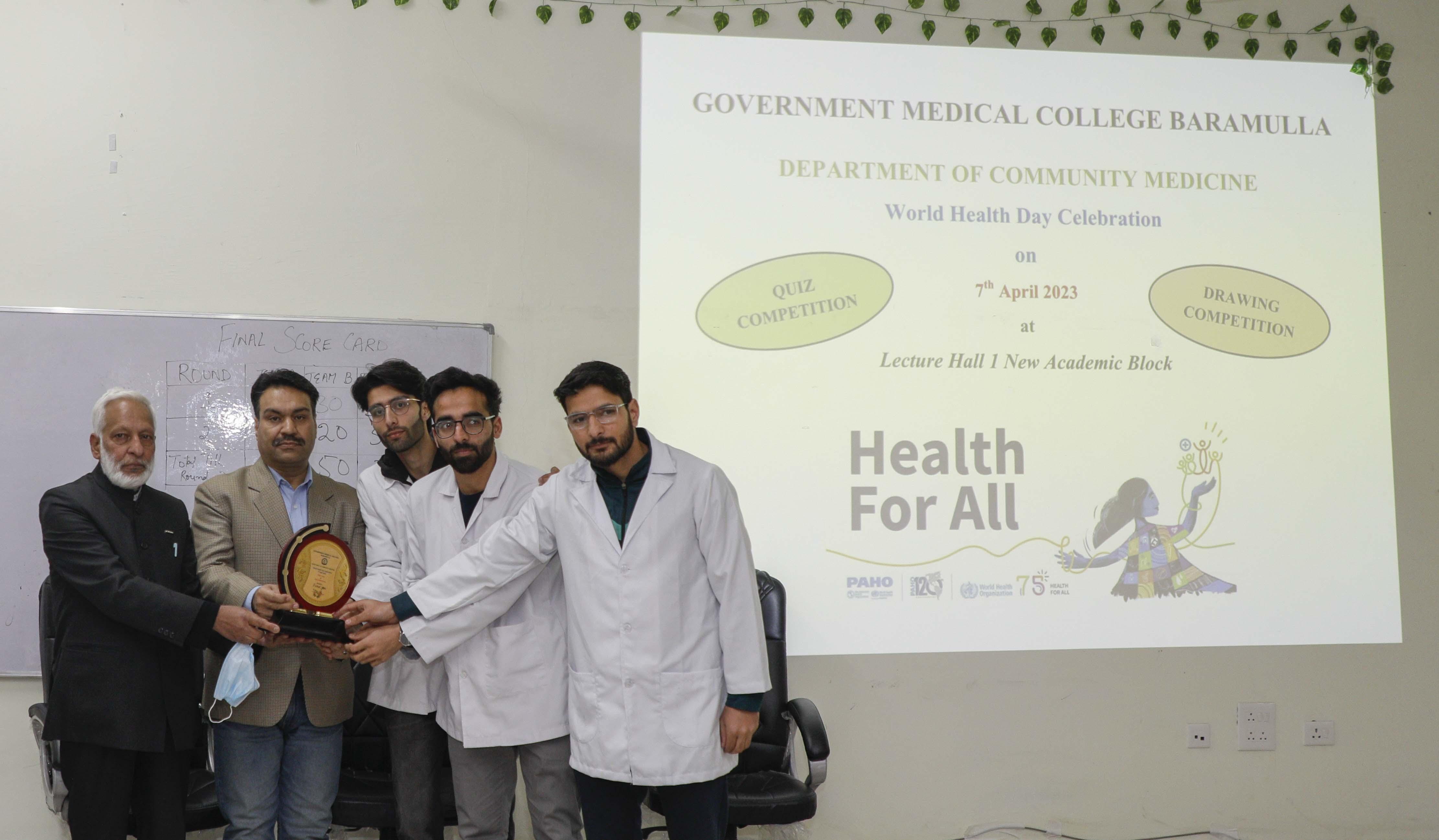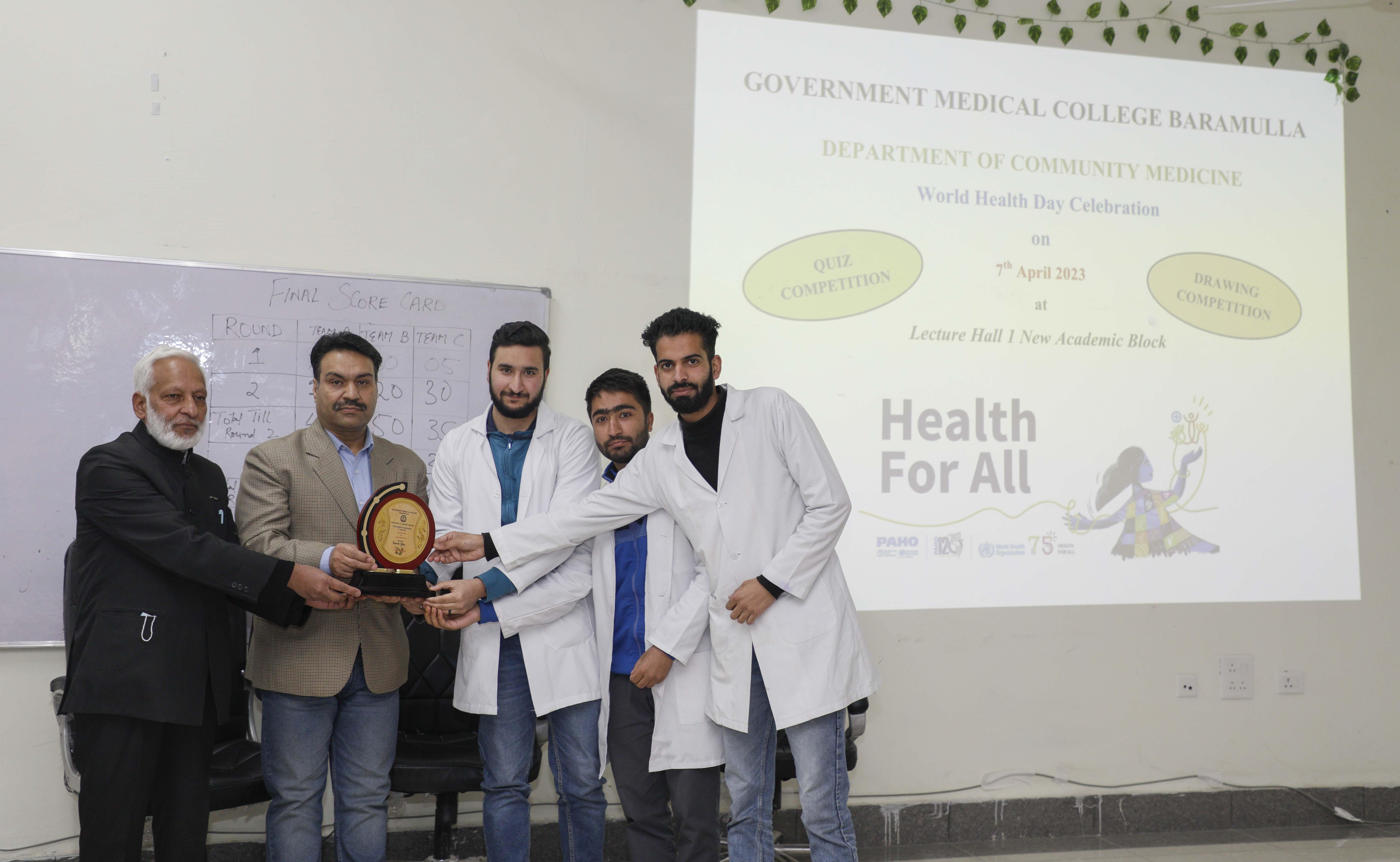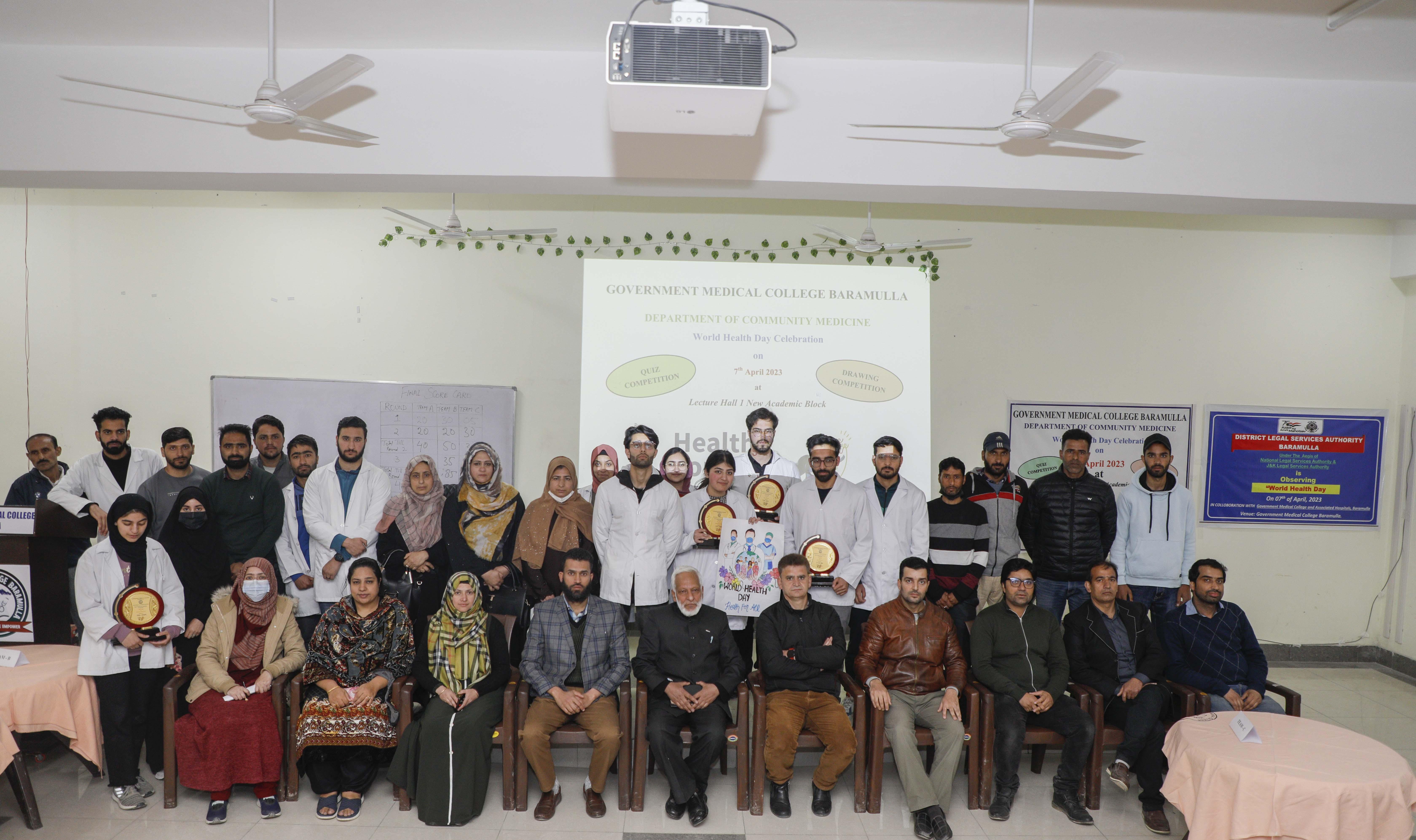 On 7th April 2023, the World Health Organization (WHO) marked its 75th anniversary with a call for renewed efforts towards achieving health equity worldwide. The theme for this year's World Health Day was "HEALTH for ALL", emphasizing the need for universal access to quality healthcare. In line with this global event, the Department of Community Medicine at GMC Baramulla Under the Leadership of Dr (Prof) Ruby Reshi, organized a day-long programme to observe World Health Day. The event commenced with an opening address by Dr Zahid Ali Khan, Associate Professor, Department of Community Medicine, who introduced the theme and purpose of the occasion. The Head of the Department of Community Medicine, Dr Abdul Majeed Ganai, delivered an awareness generation talk on the significance of the day and the need for promoting health equity. Dr Nazir Ahmad Khan, Professor & Head Department of ENT and Registrar academies, was the chief guest for the event, and he shared his ideas on the subject with the students. Medical Superintendent GMC Baramulla, Dr Parvaiz Masoodi, spoke about the importance of celebrating World Health Day, emphasizing the need for health equity as a fundamental right for all. The programme also included a quiz competition among the MBBS students from different batches, moderated by Dr Zahid Ali Khan, and assisted by Dr Muzammil Nazir, Dr Syed Najmul Ain, Dr Saima Nazir, Dr Ishtiyaq, Dr Zubair, Miss Nadiya, Mr Waseem, and Mr Satish. Additionally, a drawing competition was conducted, with judges from different departments, including Dr Shakeelur Rehman (Associate Professor Department of Pharmacology), Dr Shumail Bashir (Associate Professor Department of Chest Medicine), and Dr Berjina Farooq (Assistant Professor Department of Anatomy). After the competitions, the winners were felicitated, and the event ended with a vote of thanks by Dr Uruj (Associate Professor Department of Community Medicine). The event was attended by faculty members, paramedical staff, MBBS students from GMC Baramulla, and staff of District Legal Services Authority Baramulla, who were also collaborators for the event. Overall, the event was a successful tribute to World Health Day, highlighting the importance of health equity and encouraging renewed efforts towards achieving it.