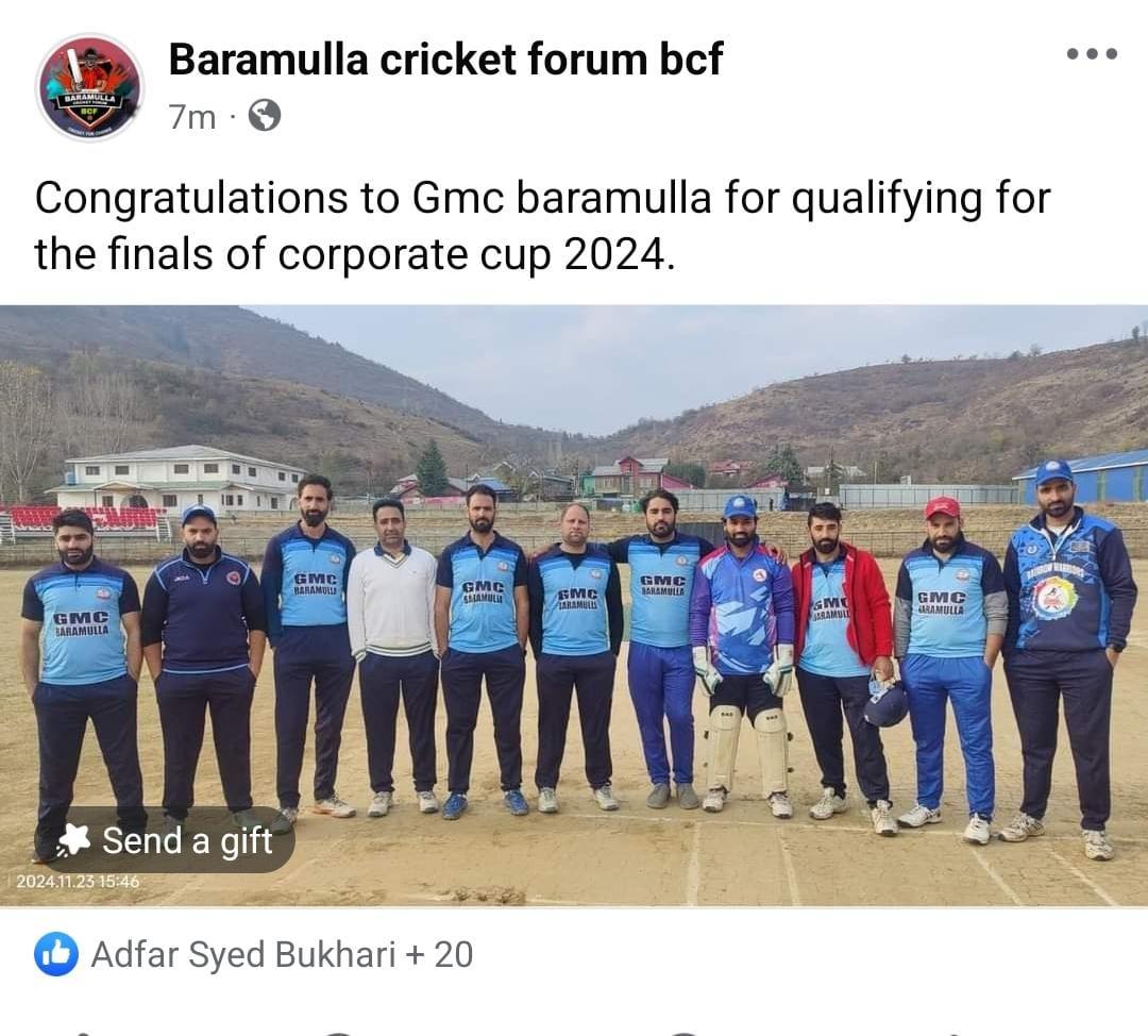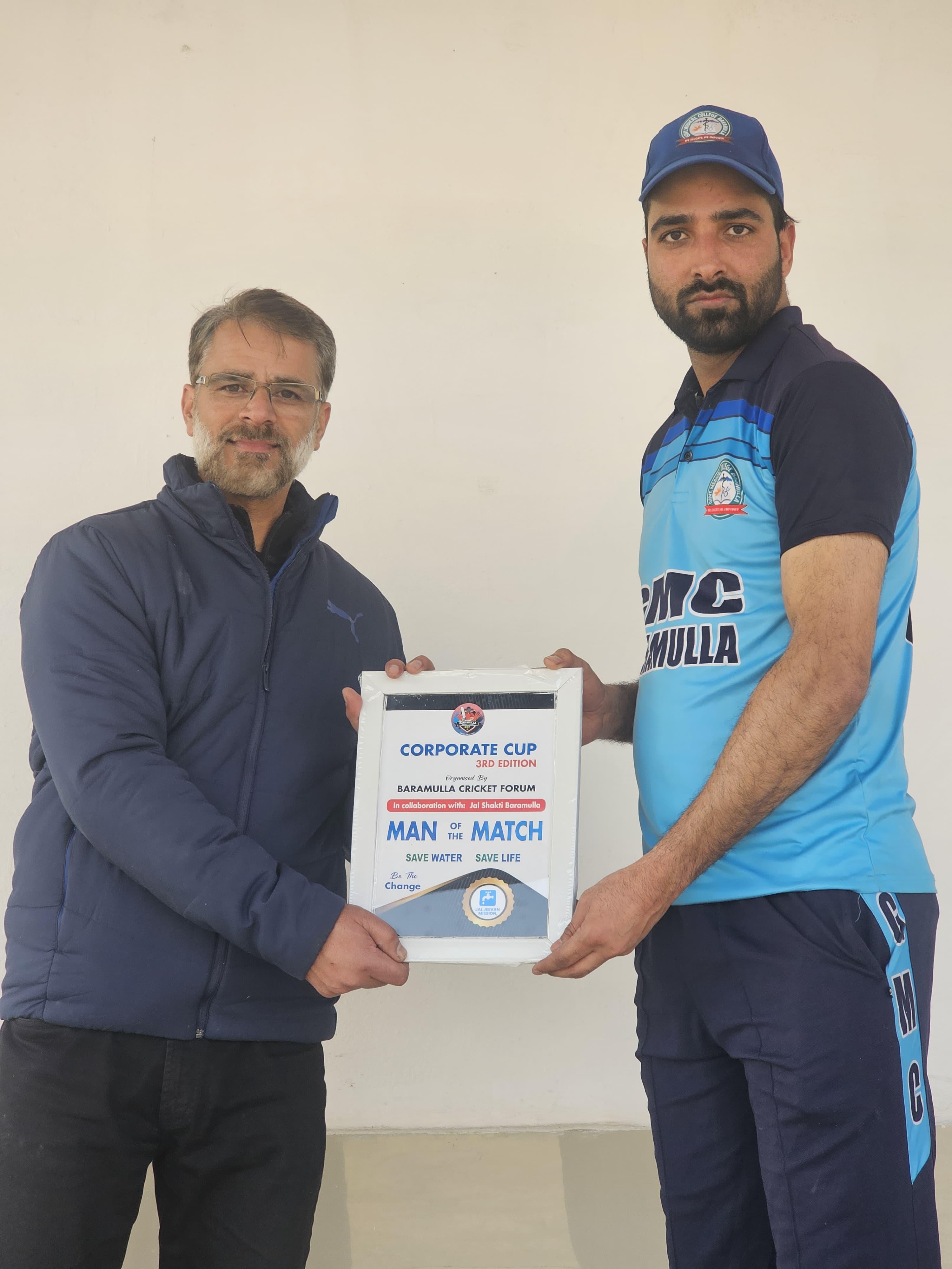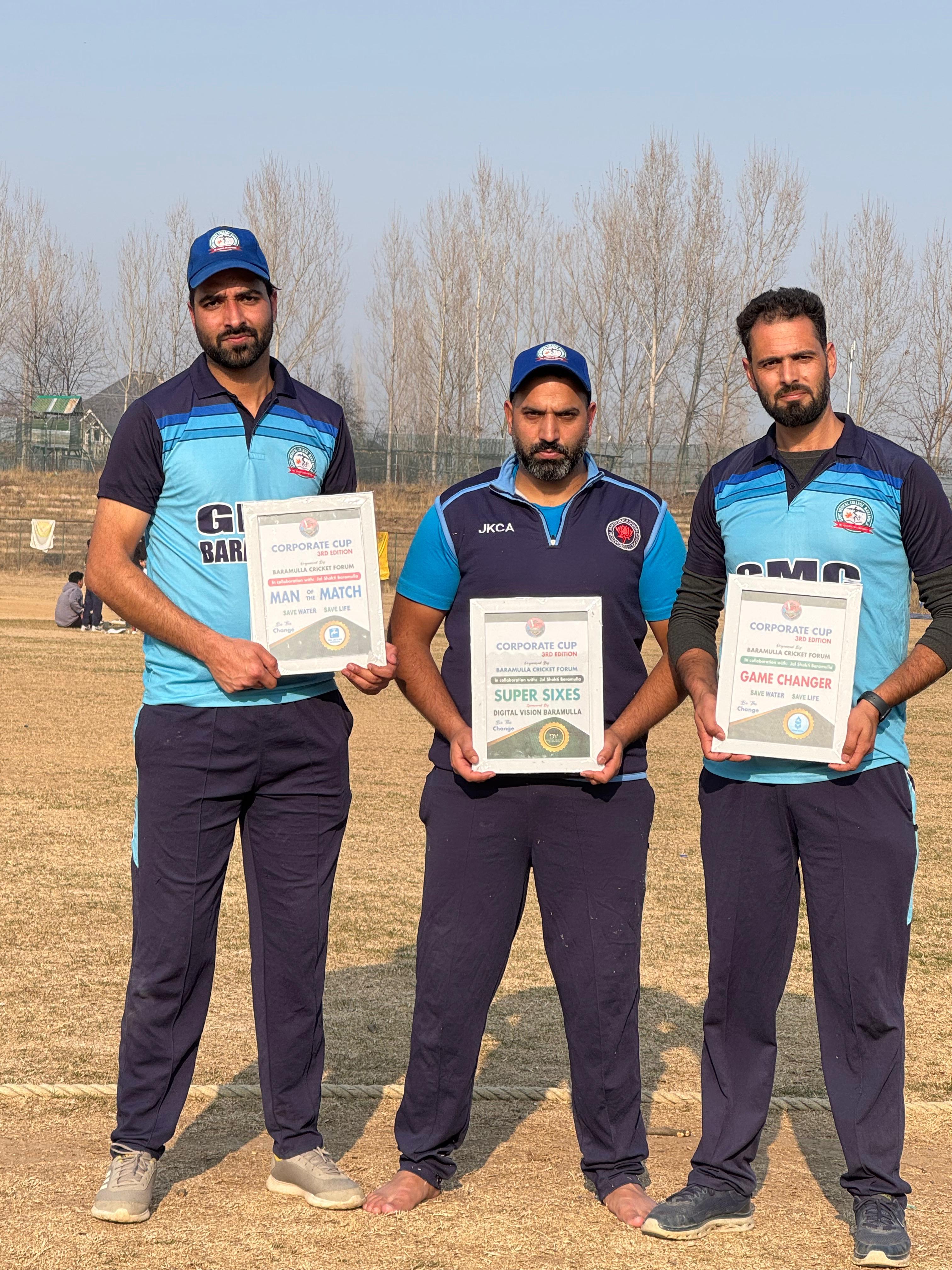 The thrilling encounter of the Corporate Cup 3rd Edition between GMC Baramulla and LJHP unfolded at the picturesque Bipin Rawat Stadium in Baramulla. Fans were treated to an electrifying display of batting and bowling prowess as both teams fought fiercely for supremacy. Batting first, GMC Baramulla set a formidable target, thanks to stellar performances from their top order. Asif Sofi anchored the innings with a solid knock of 56 off 38 balls, displaying finesse and calculated aggression. He was well-supported by Sajjad Majeed, who played a blistering innings of 60 off just 31 balls, hitting boundaries at will. Faheem Majeed added the finishing touches with an explosive 54 off only 27 balls, taking the opposition bowlers to task in the death overs. In the bowling department, LJHP's Imtiyaz stood out, delivering a remarkable spell that yielded 3 crucial wickets, keeping the game competitive and providing his team a fighting chance. The match showcased a blend of individual brilliance and teamwork, leaving spectators thoroughly entertained. The Corporate Cup continues to uphold its reputation as a platform for thrilling cricket action and emerging talent.